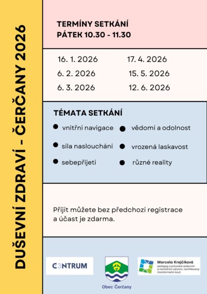 Setkání je realizováno díky laskavé podpoře Obce Čerčany a je pro účastníky ZDARMA.
